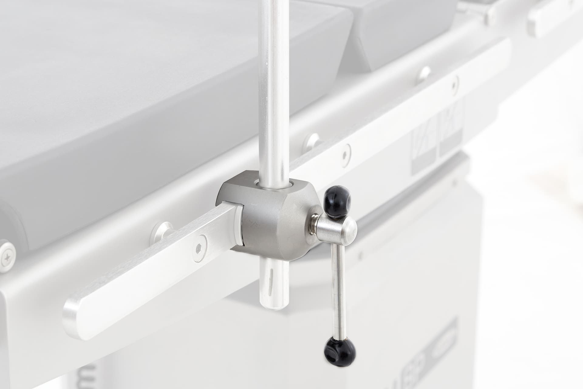 Yuvarlak mil yapısına sahip aksesuarlarla uyumlu olup, 25 x 10 mm standart ameliyat masası ray sistemleri ile tam uyumludur.