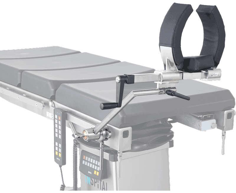 Yumuşak pedli destek yüzeyleri hasta konforunu artırırken, yükseklik ve genişlik ayarları farklı hasta anatomilerine uyum sağlar. El krankı mekanizması ile bacak destek genişliği hassas ve kontrollü şekilde ayarlanabilir.