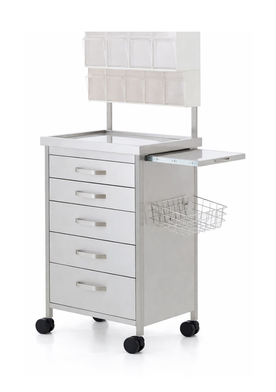 Üzümcü Anestezi Arabası, ameliyathane ve girişim odalarında anestezi malzemeleri, ilaçlar ve cerrahi yardımcı ekipmanların düzenli, güvenli ve kolay erişilebilir şekilde tutulması amacıyla tasarlanmıştır. Kullanıcı talepleri göz önünde bulundurularak geliştirilen ürün, 304 kalite paslanmaz çelik gövdesi ile dayanıklı ve uzun ömürlü performans sunar. Yuvarlatılmış içbükey köşeleri, kolay temizlenebilir yüzeyi ve antibakteriyel pres baskı yüzeyi ile uluslararası hijyen standartlarına uygun bir yapı sergiler ve enfeksiyon kontrolünü destekler.