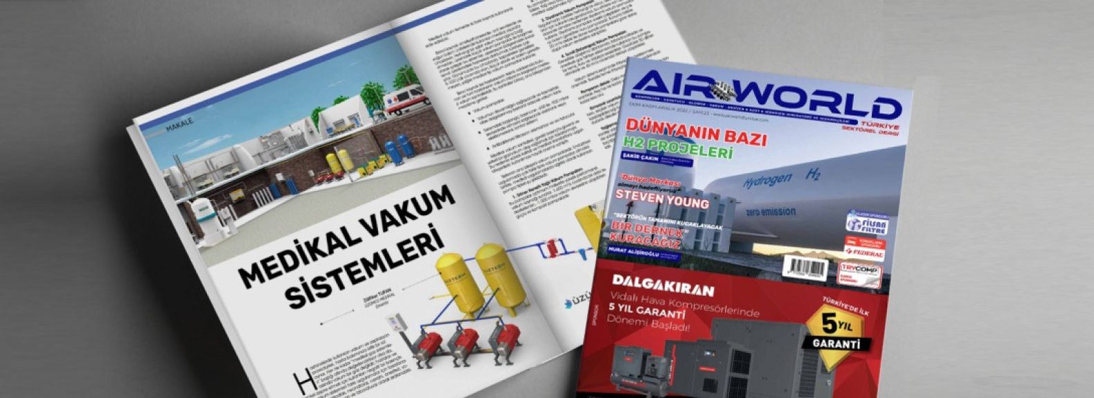 Direktörümüz Zülfikar Tufan'ın kaleme aldığı 'MEDİKAL VAKUM SİSTEMLERİ' başlıklı makale AIRWORLD dergisinin son sayısında yayınlanmıştır. Makalede, medikal vakum sistemleri hakkında bilmek istediğiniz bir çok soruya cevap bulabilirsiniz.