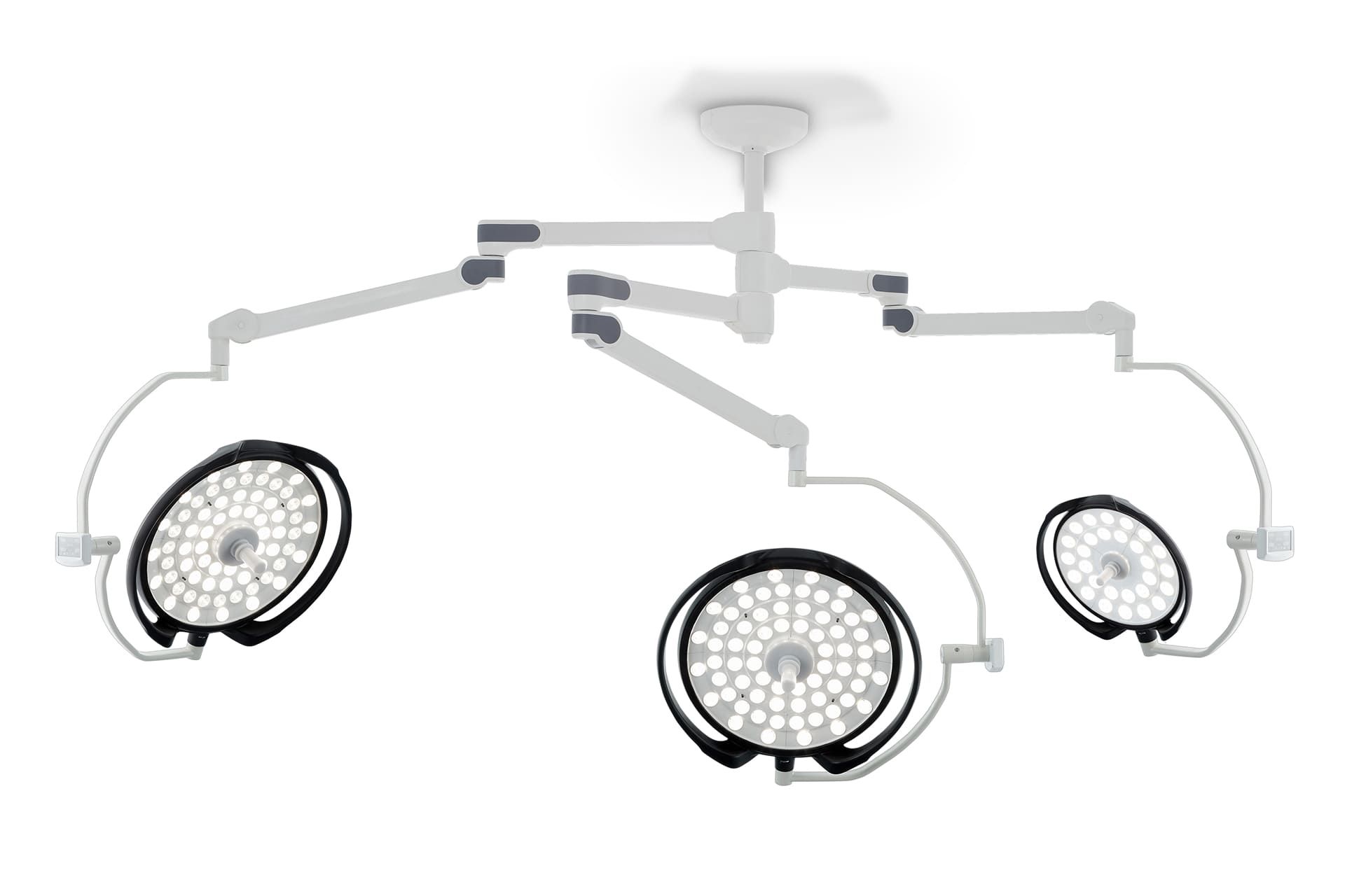 The lamp consists of two main heads with 160,000 lux illumination power and one satellite head with 120,000 lux illumination power.