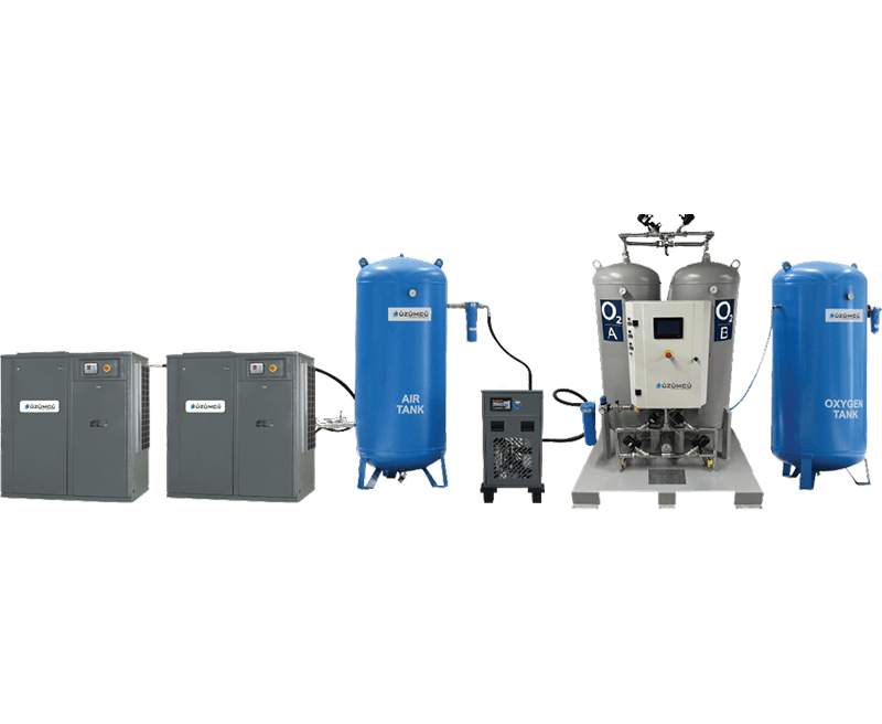 Üzümcü Oxygen Production Systems are next-generation solutions developed to meet the medical oxygen needs of hospitals and healthcare facilities through an on-site production model. With these systems, healthcare institutions can manage their oxygen supply independently, reliably, and sustainably through their own automated infrastructure. When necessary, integration with cylinder systems ensures instant backup security.