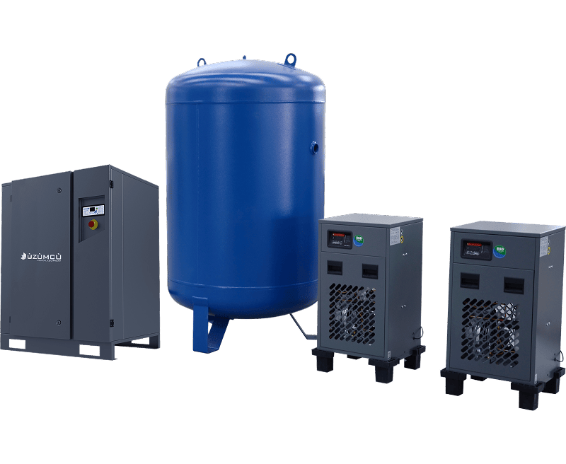 The rotary screw compressors used in these systems offer solutions across a wide capacity range. Compressor power options range from 2.2 kW to 37 kW, providing configuration flexibility to meet the needs of healthcare facilities of various scales. Thanks to high-quality screw blocks and advanced lubrication systems, the systems deliver continuous operation, operational stability, and long-lasting performance.