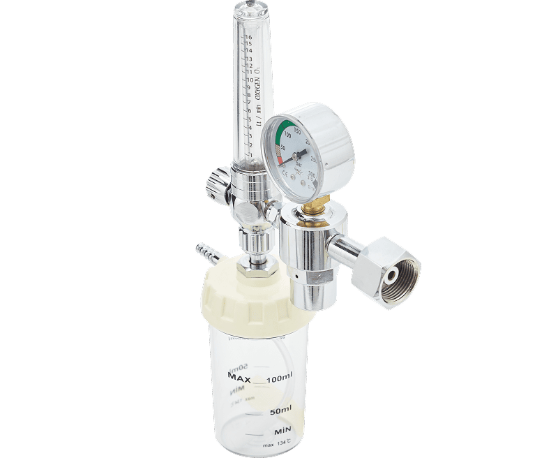 Developed to support patients with respiratory failure, this device stands out for its easy use and durability. Its chrome-plated brass body ensures long-lasting use, while the sterilization-compatible, high-strength polycarbonate humidifier chamber safely maintains humidity control during oxygen therapy. Oxygen therapy devices are manufactured with connection options compliant with DIN, BULL NOSE, and PIN INDEX standards. They feature a standard flow rate range of 0–15 lpm.