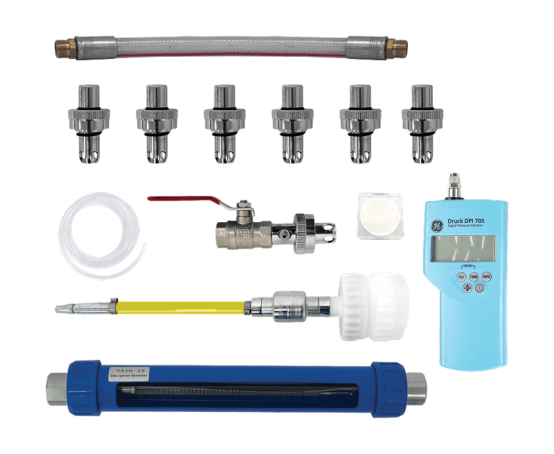 El Kit de Prueba y Puesta en Marcha AGSS se utiliza en los procesos de puesta en marcha y control periódico para verificar que los sistemas de eliminación de gases anestésicos en los quirófanos mantengan condiciones adecuadas de vacío, flujo y funcionamiento seguro.