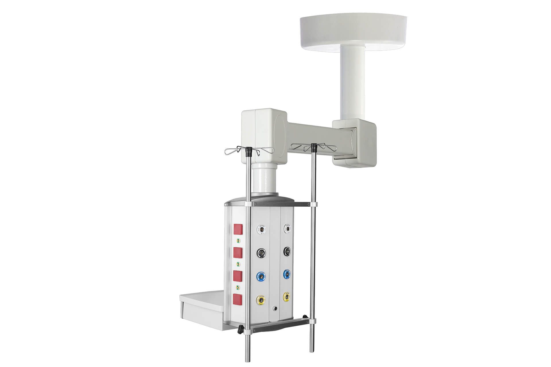 Эти системы, монтируемые на потолок, обеспечивают легкий доступ к медицинскому оборудованию через выходы для медицинских газов, электрические и сетевые подключения. Они устраняют путаницу с кабелями и шлангами, создавая гигиеничную среду. Широкий диапазон движений, модульные аксессуары, держатели для мониторов и решения для освещения оптимизируют рабочий процесс и повышают безопасность пациента.
